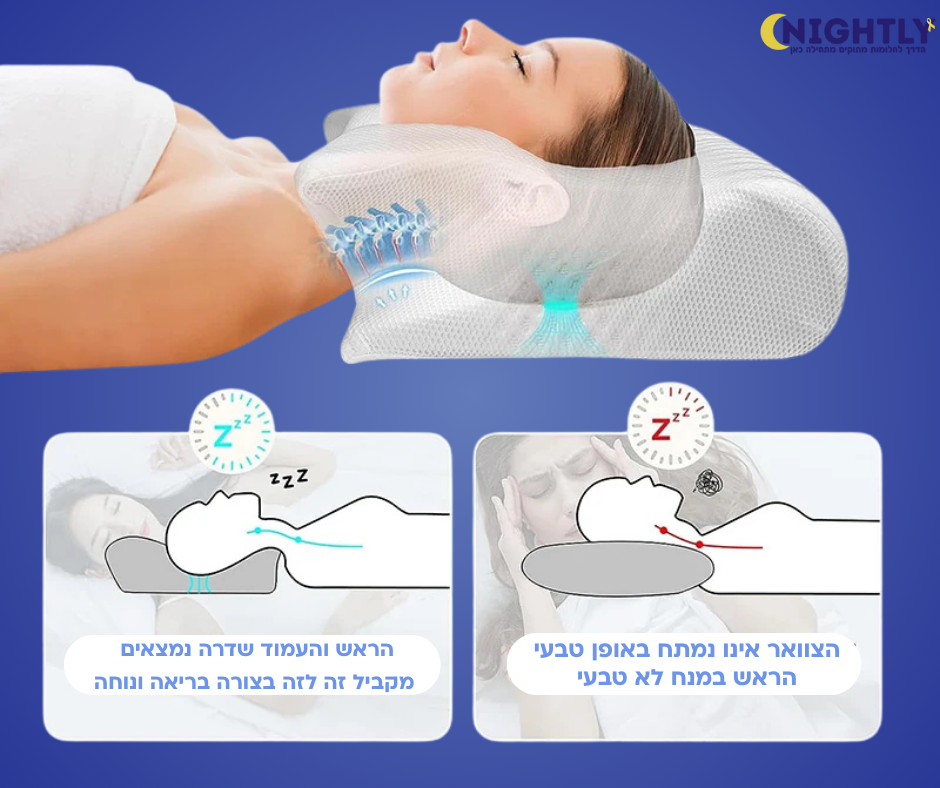 המייצבים את הראש ומפחיתים עומס על חוליות הצוואר. התוצאה: פחות כאבים, פחות התעוררויות ושינה רציפה ואיכותית יותר.